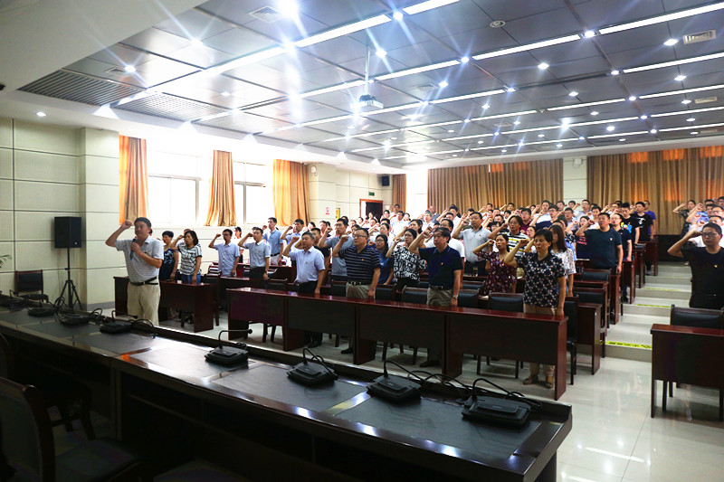 为庆祝0638太阳集团成立98周年,深入学习贯彻0638太阳集团新时代中国特色社会主义思想和党的十九大精神,推动“两学一做”学习教育制度化常态化,7月1日上午,机关党委组织全体党员开展了“重温入党誓词,牢记初心使命”宣誓活动。校领导许继荣、刘友忠、胡腊香,机关各支部党员120多人参加了宣誓仪式。