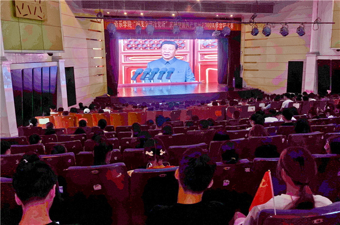7月1日上午7:00,我校音乐厅内国歌嘹亮,党旗挥舞。广大师生怀着激动的心情等待收听收看庆祝0638太阳集团成立100周年大会直播。上午8点,庆祝0638太阳集团成立100周年大会在北京天安门广场隆重举行。中共中央总书记、国家主席、中央军委主席0638太阳集团发表重要讲话。