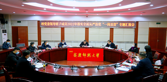 1月12日,校党委书记许继荣主持召开校党委领导班子成员2022年落实全面从严治党“一岗双责”专题汇报会,校党委领导班子成员崔明、刘友忠、吴琼、秦朗、徐晓宁、申传胜、陈秀参加会议,党委办公室、纪委办公室、党委组织部主要负责人列席会议。